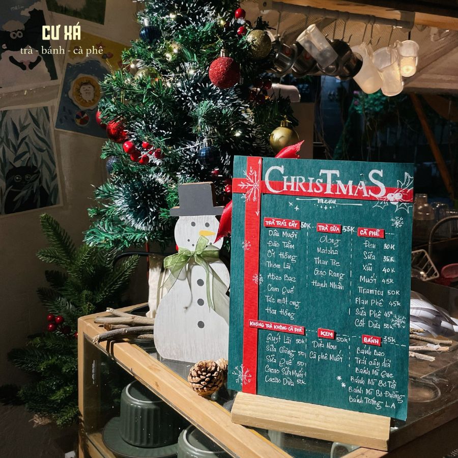 Cư Xá không chỉ là quán cà phê trang trí Noel đẹp tại Quận 10 để bạn thưởng thức ly cà phê đậm đà mà còn là điểm đến lý tưởng để tìm lại những ký ức xưa cũ, đắm chìm trong không khí Giáng sinh đầy ấm áp. Quán có nhiều góc chụp ảnh độc đáo, mang đậm chất riêng, phù hợp với những ai muốn có trải nghiệm Giáng sinh mộc mạc nhưng đáng nhớ.