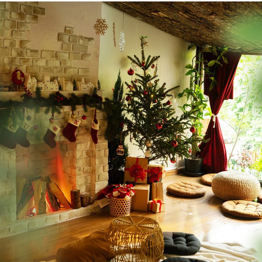 Trong danh sách 5+ quán cà phê trang trí Noel đẹp tại Quận 10, Nhà Thơm là một lựa chọn không thể bỏ qua cho những ai yêu thích sự đơn giản nhưng vẫn tinh tế. Quán được trang trí theo phong cách tối giản với những phụ kiện Noel nhỏ gọn nhưng đầy ấn tượng. Cây thông Noel nhỏ xinh, những chiếc tất đỏ treo dọc theo tường và các dây đèn vàng ấm áp tạo nên một bầu không khí lễ hội nhẹ nhàng, gần gũi.